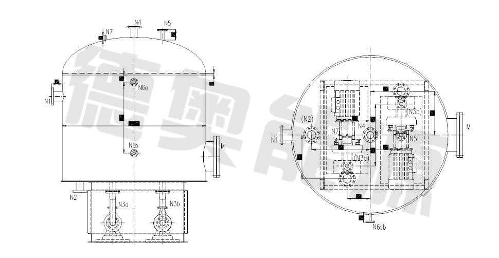 2、根據(jù)所需回收的凝結(jié)水量選取設(shè)備處理容量,設(shè)備型式立臥式選擇,原則上處理量50t/h以下建議使用立式,處理量大于50t/h或設(shè)備容積大于10立方米建議使用臥式;