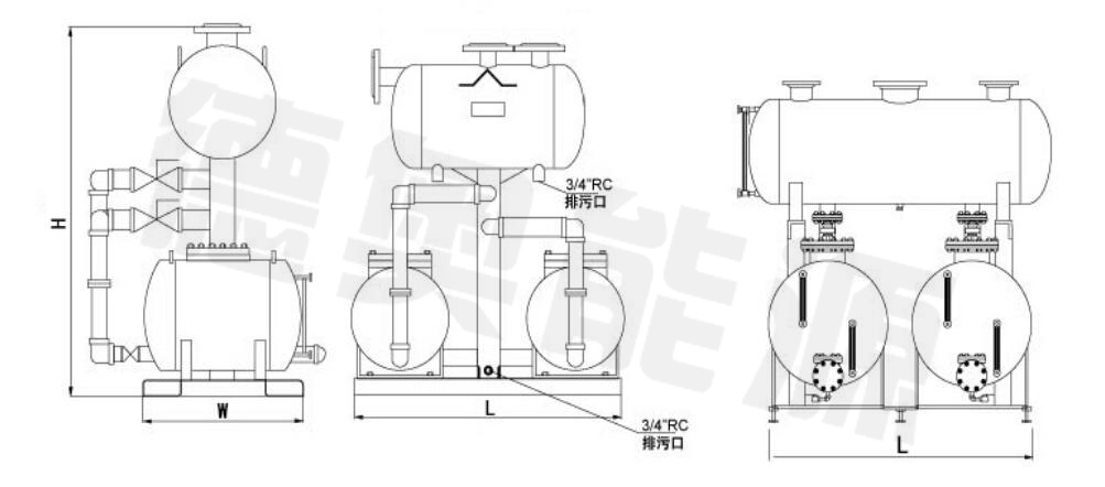 4.凝結(jié)水回收裝置為非標(biāo)產(chǎn)品,即使處理量相同,設(shè)備實際尺寸會根據(jù)實際系統(tǒng)工況而針對性設(shè)計;