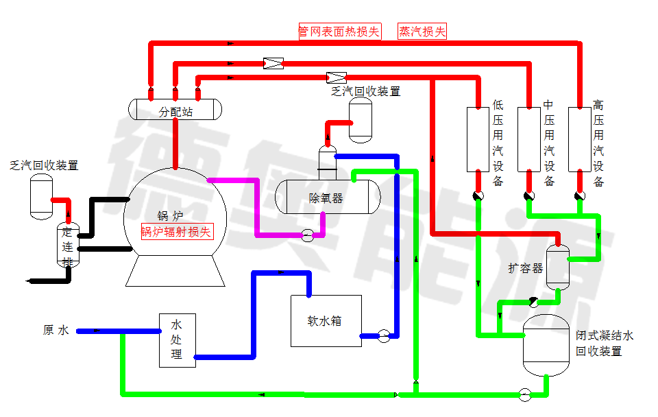 整個(gè)蒸汽熱力系統(tǒng)的熱量損失見(jiàn)圖一所示