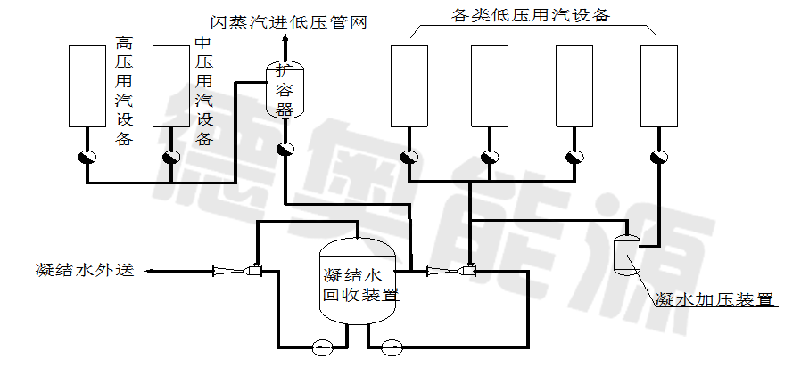 蒸汽作為一種熱能載體,廣泛應(yīng)用于發(fā)電供熱、石油化工、鋼鐵冶金、輕紡印染、造紙、釀造和橡膠等工業(yè)領(lǐng)域中。蒸汽在各種用汽設(shè)備中放出汽化潛熱后,變?yōu)榻跬瑴赝瑝合碌娘柡湍Y(jié)水,凝結(jié)水具有的熱量可達(dá)蒸汽全熱量的20-30%,而且壓力越高凝結(jié)水所具有的熱量越多,凝結(jié)水的回收利用對(duì)蒸汽系統(tǒng)高效而合理的利用有實(shí)際意義,100%回收利用凝結(jié)水熱量和工質(zhì),具有很大的節(jié)能潛力。