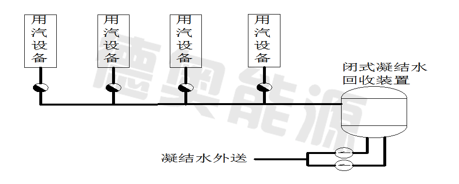閉式凝結(jié)水回收系統(tǒng)是指從疏水器出來(lái)凝結(jié)水到回收裝置再到回用系統(tǒng)整個(gè)流程完全封閉,沒(méi)有任何汽水外排現(xiàn)象。(見(jiàn)圖2)
